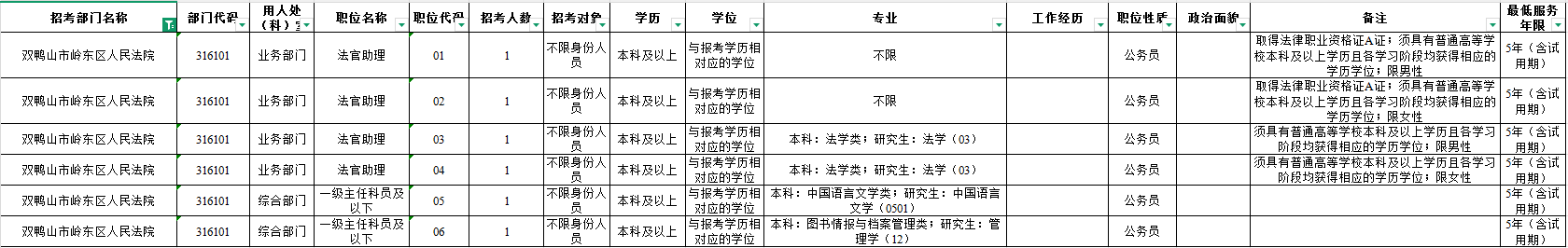 今日报名!双鸭山市岭东区人民法院招录6人!