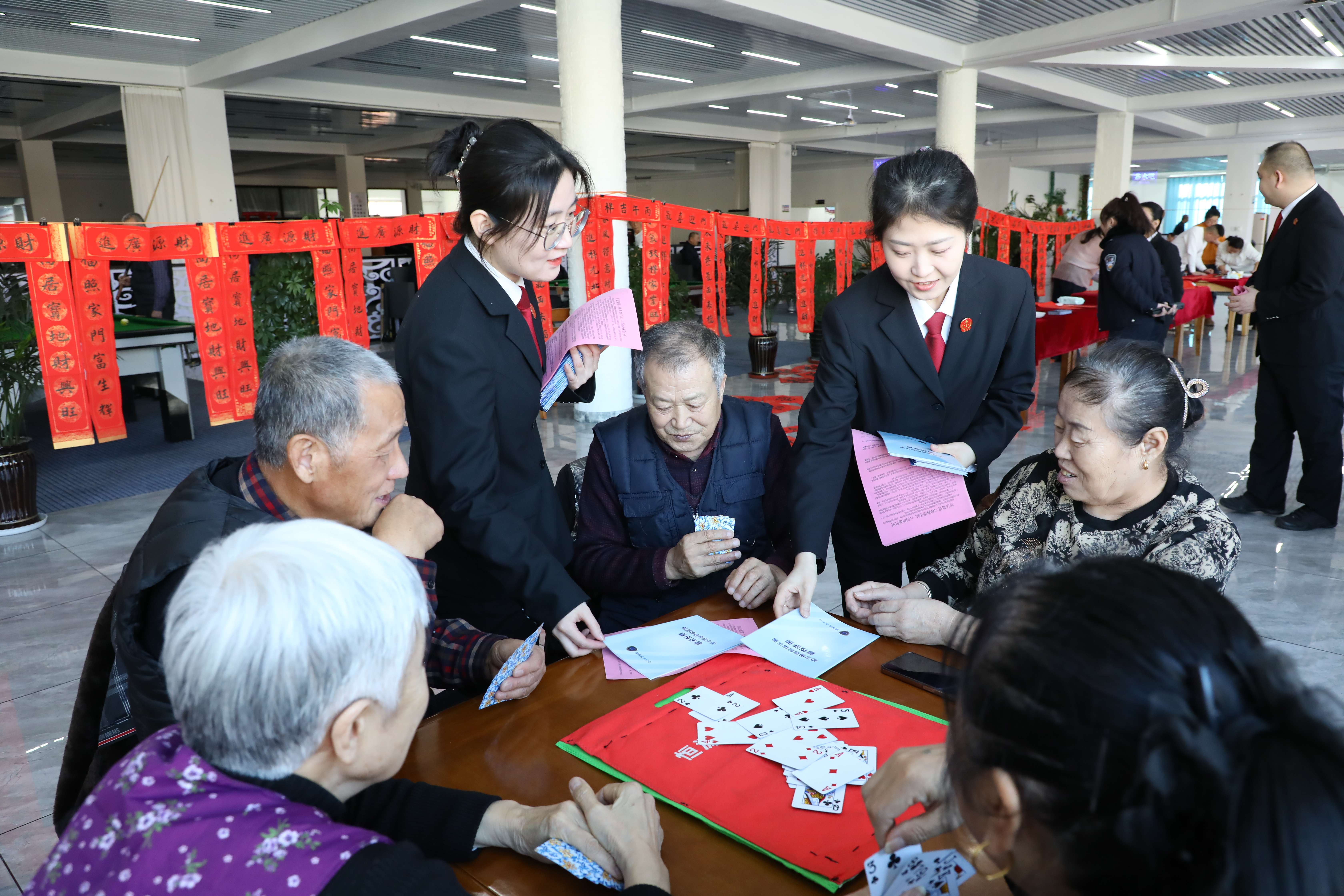 同时,干警们立足审判职能,将普法宣传巧妙融入节庆活动,针对春节期间电信网络诈骗、养老诈骗、冒充亲友借款诈骗等高发骗局,向过往群众发放普法宣传手册,打造“新春送法”特色宣传,提醒群众守护好自己的“钱袋子”,过一个平安祥和的春节。