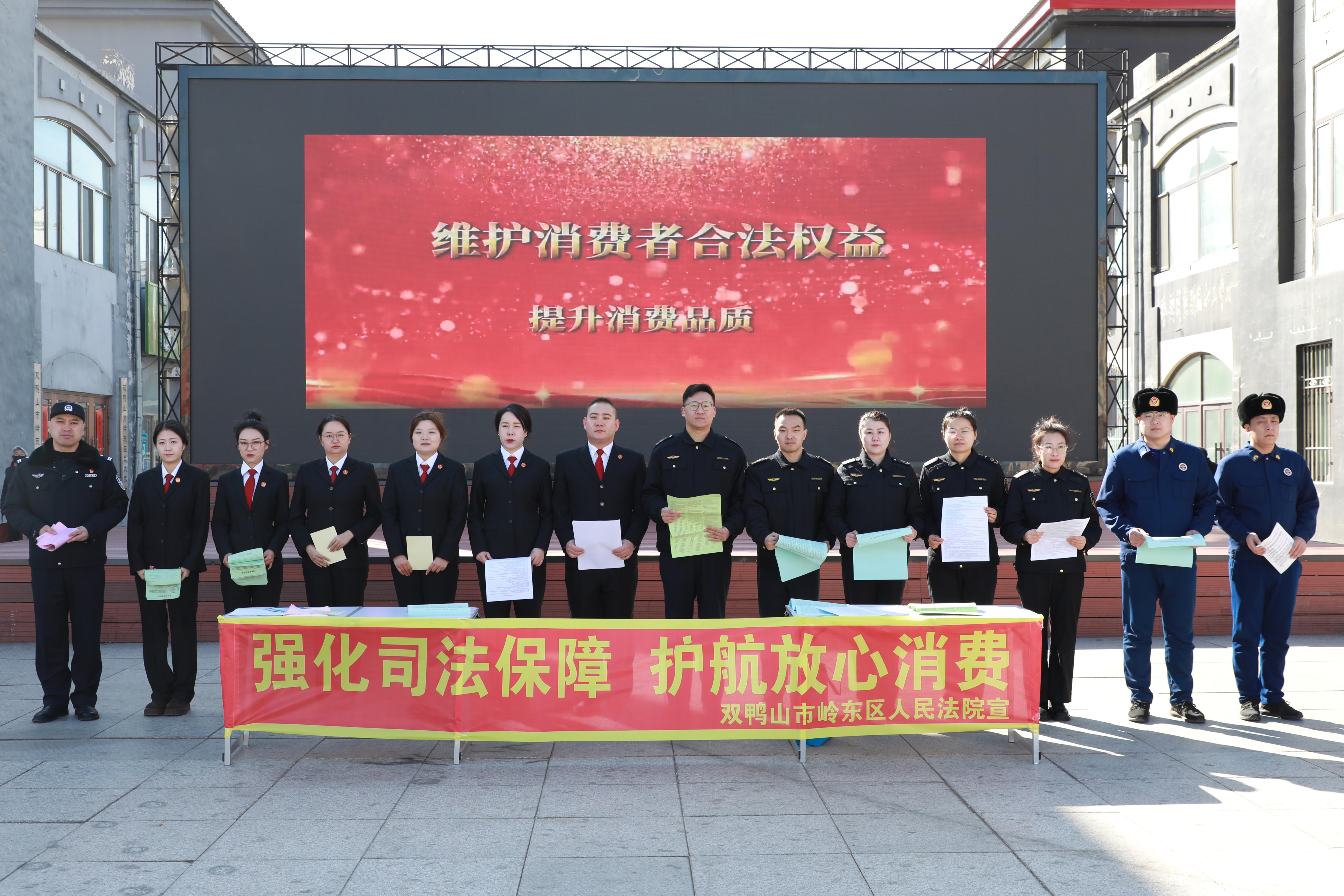 为切实增强辖区群众消费维权意识,提升依法维权的能力,全力打造安全放心、公平公正的消费环境,在“3·15国际消费者权益日”来临之际,双鸭山市岭东区人民法院联合双鸭山市市场监督管理局岭东分局、双鸭山市岭东区消防救援大队,在岭东博爱园广场共同举办了以“强化司法保障 护航放心消费”为主题的宣传活动,把法律护航和监管服务精准送到群众身边,实实在在守护好群众的“钱袋子”。